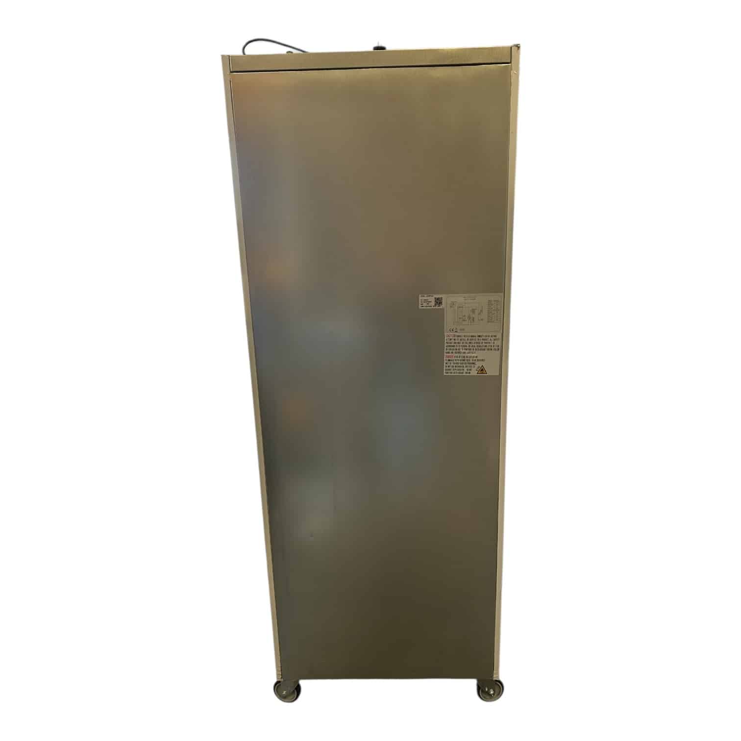 Son design tout inox et ses équipements professionnels (thermostat digital, serrure, éclairage, roulettes) assurent durabilité, hygiène et mobilité au quotidien.