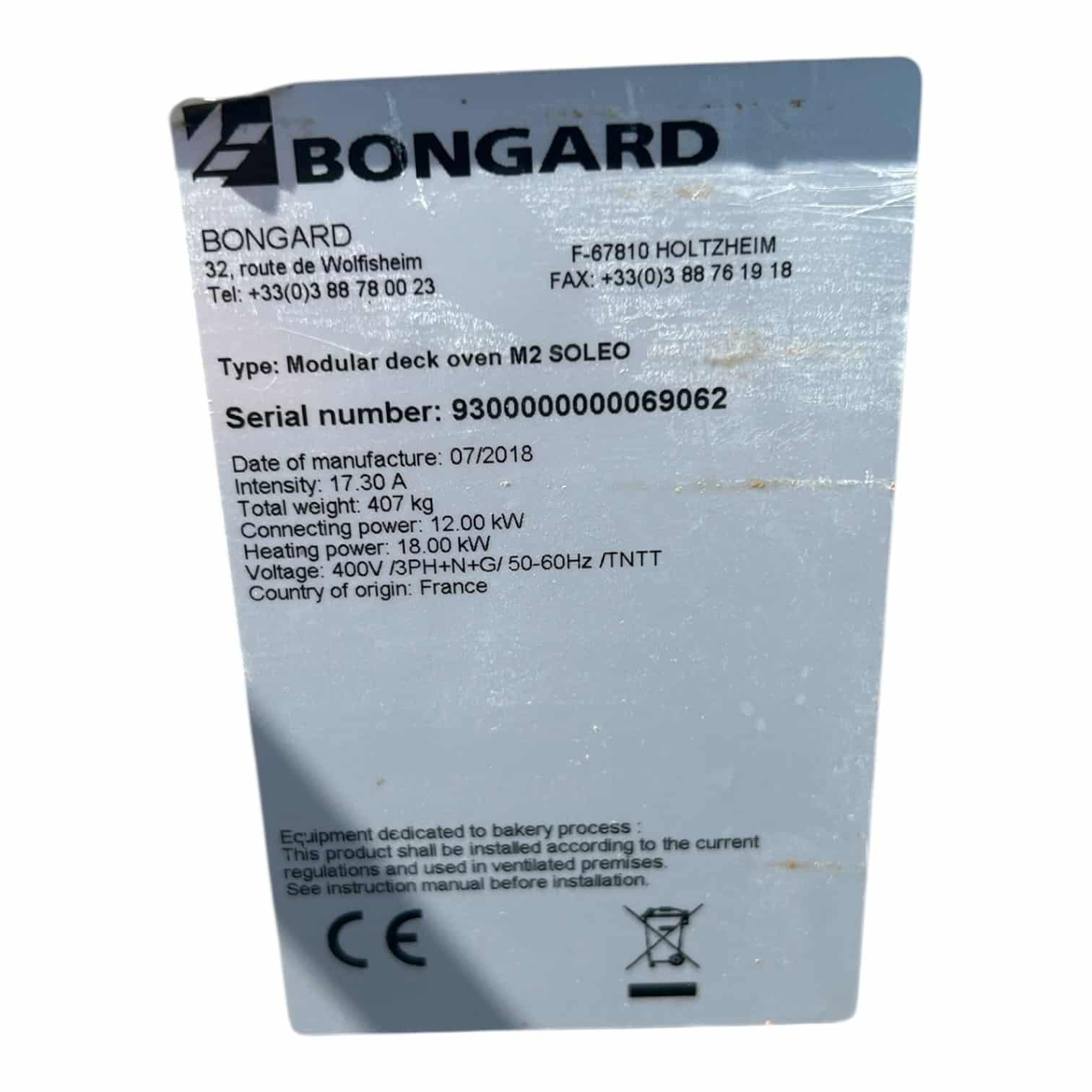 Description du four de boulangerie BONGARD d’occasion :