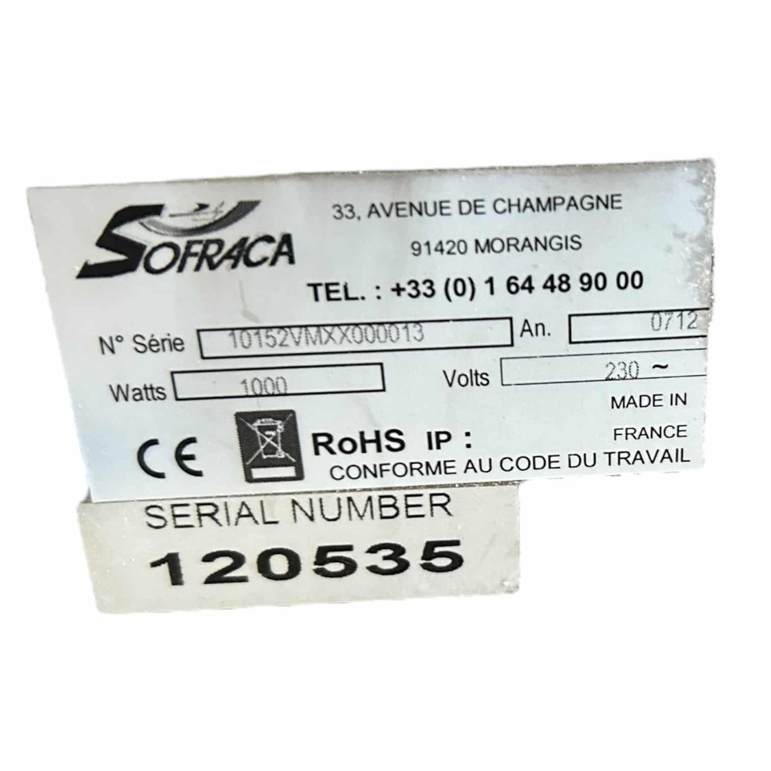 • Modèle : SOFRACA 10152VM